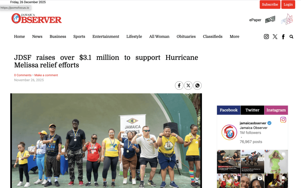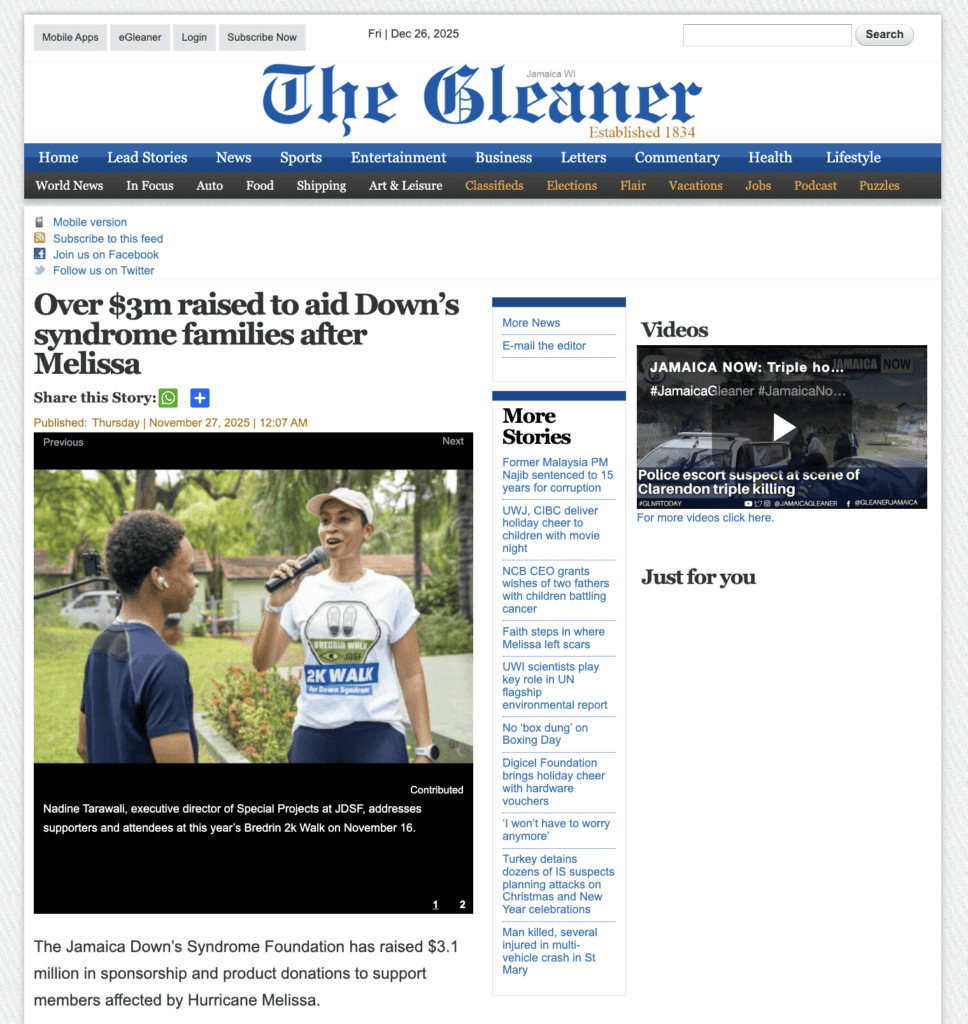 Through strategic storytelling, targeted media relations, impactful visuals, and cohesive social media management, ND Communications successfully elevated the Jamaica Down Syndrome Foundation’s message of “Health Equity” and helped drive a powerful, community-driven fundraising effort.
